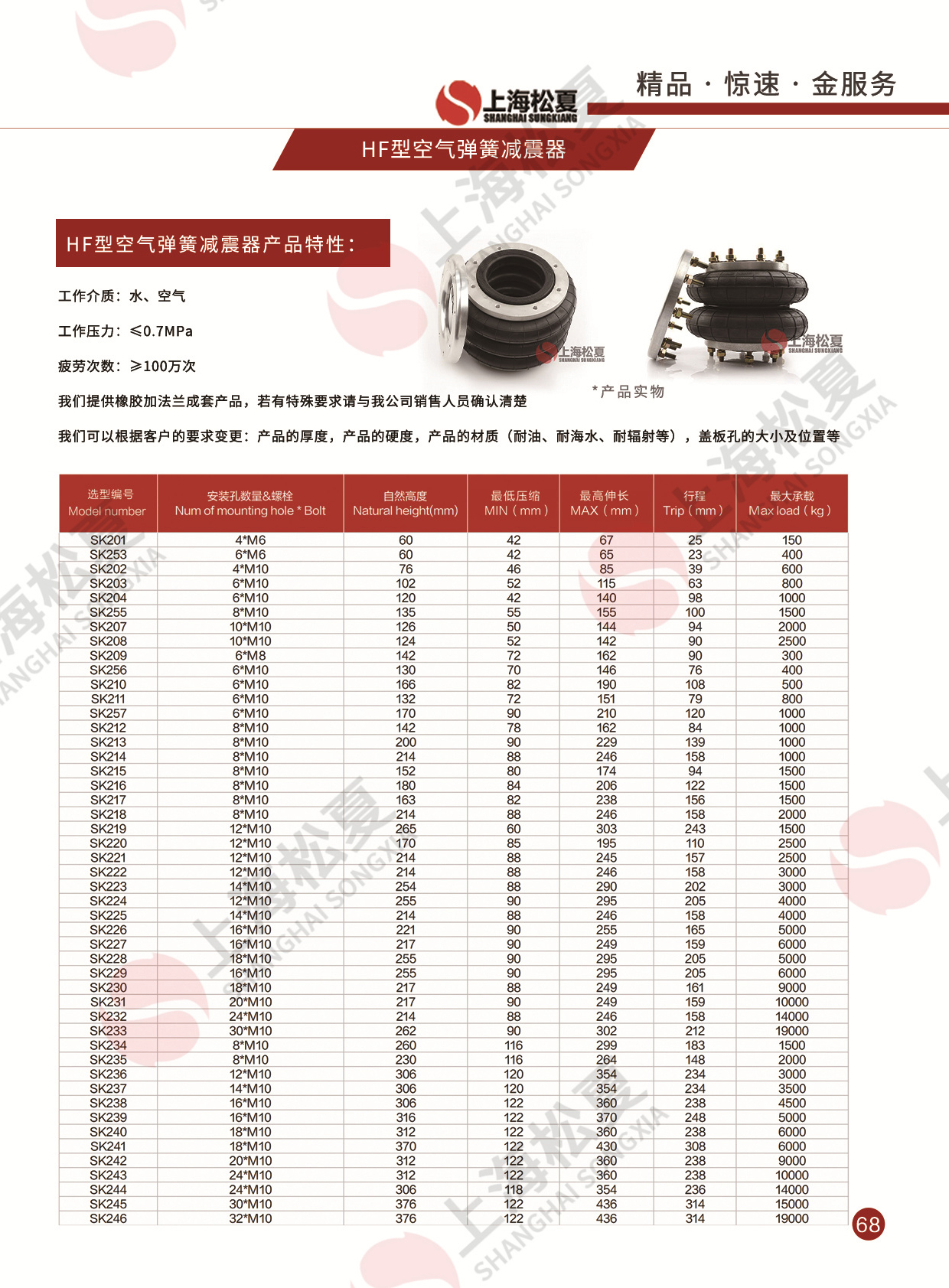 工業空氣彈簧系列:橡膠空氣彈簧、HF型糾偏氣囊、JBF型皮囊氣缸、GF型造紙機用氣胎、各類汽車空氣懸掛氣囊、皮老虎等。